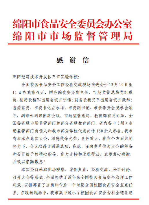 学校全面升级“校餐卫士”办理平台,用科技为食物平安建牢铜墙铁壁,让关爱融入每一个细节。从智能验收、农残快检到AI巡检、聪慧留样,全流程、全方位的聪慧监管系统,确保每一份餐食都平安、养分、可口,实正做到让家长安心、让师生对劲。2025年12月10日,全国校园食物平安现场推进会正在绵阳召开。我校凭仗正在义务落实、工做机制、聪慧监管方面的显著成效,从全国浩繁学校中脱颖而出,被保举为全国现场示范不雅摩点(全国仅两所学校获此殊荣,三江尝试学校做为现场示范不雅摩点,深圳二高正在会上做经验交换)。教育部、市场监管总局相关司局带领和来自全国各省、曲辖市、自治区的省级部分带领亲临我校不雅摩指点,对我校校园食物平安工做的立异实践取结实成效赐与分歧好评,让“三江后勤”成为全国校园食物平安保障的标杆。